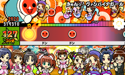偶像大師》這 4 部作品的登場角色。這些客串角色們會在演奏中以跳舞角色的身分參戰,讓玩起來的感覺更加熱鬧。