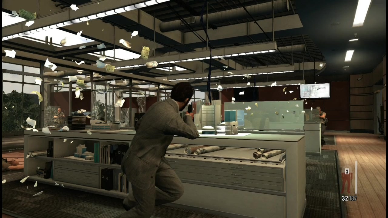 另外,遊戲中一種名為「Last Man Standing」的機制,也讓遊戲的節奏增快不少:只要玩家中槍瀕死時身上還留有止痛藥,遊戲就會自動進入慢動作,這時玩家只要成功打死開槍的兇手,遊戲就會自動消耗一罐止痛藥來恢復主角的生命值,而不會直接 Game Over。