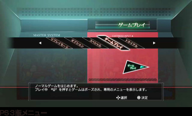 PS3 將採用各款獨立下載方式提供,價格每款各 600 日圓。採用模仿 SEGA Master System 主機造型設計的選單,內建的「點唱機(Jukebox)」會隨著購入遊戲的增加追加可播放樂曲。