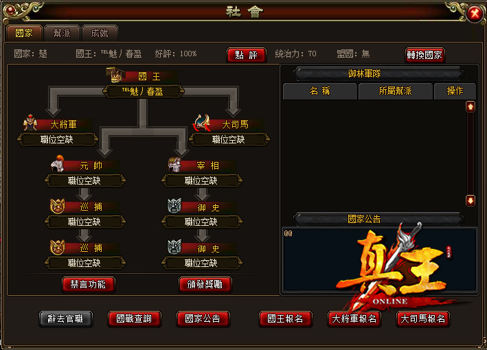 Q:遊戲中的司職系統有何功用?玩家要如何做,才能成為一國之王?