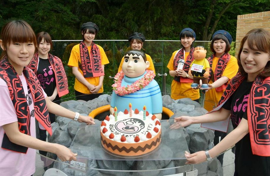 胖虎即將在 6 月 15 日過生日囉!位於日本川崎市的「藤子‧F‧不二雄博物館」也於上週四(5/31)提前幫他慶生。一群穿著胖虎 T 恤,並披著印有「Birthday,06.15,胖虎」字樣應援毛巾的少女們,不僅端上畫有胖虎大展歌喉的生日蛋糕,少女們更還貼心為他戴上精心製作的花圈,齊聲為他歡唱生日快樂歌,相信也讓熱愛唱歌的胖虎感到非常欣喜。