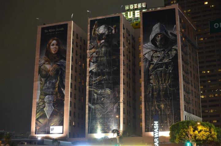 | 《上古卷軸 Online》在 E3 展場附近飯店架起大型宣傳廣告 |
