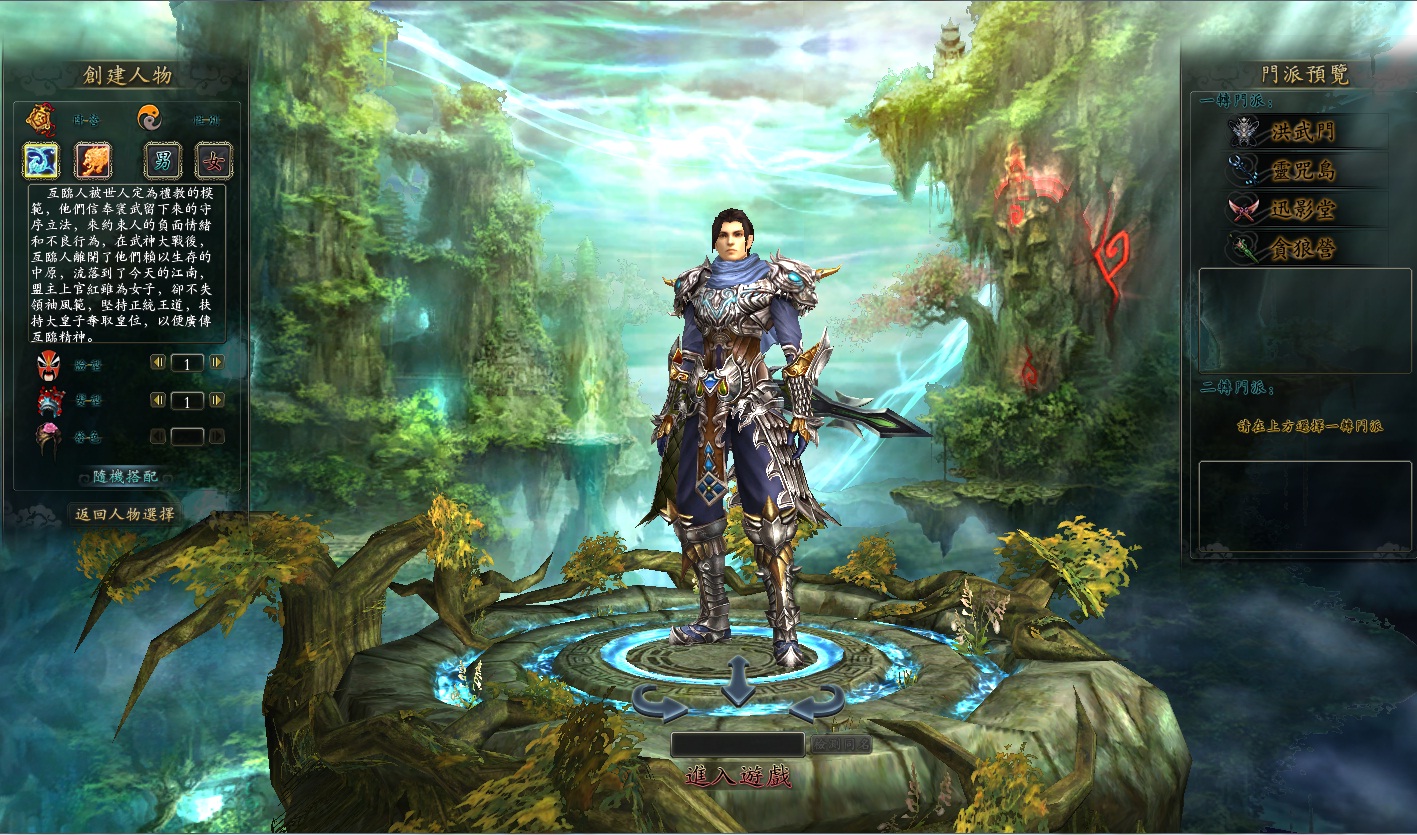 玩家在一開始的時候扮演的是武林中的少俠,升級至 10 級後就可以選擇門派加入,這邊會在後面為大家說明。先進入遊戲看看