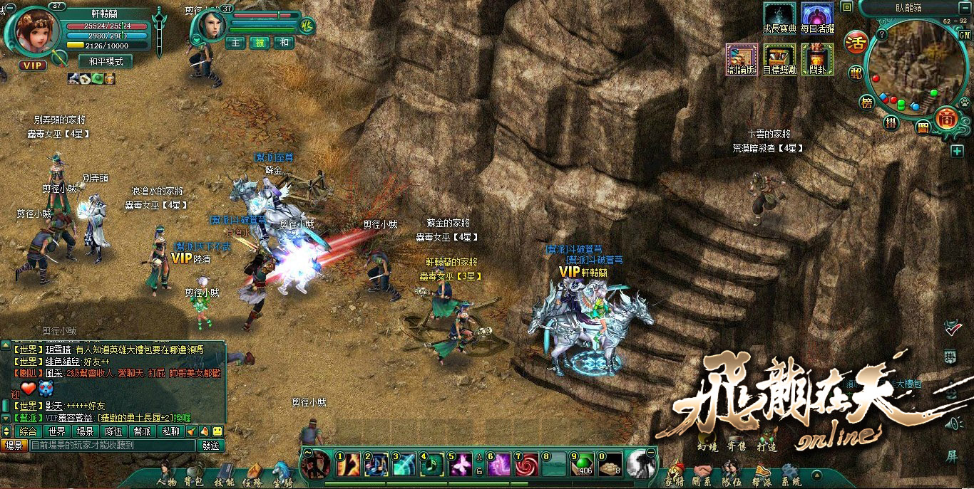 飛龍在天 Online》畫面唯美寫實,故事劇情精彩動人,結合PVP、PVE等多種玩法,擁有規模廣大的幫會戰爭和強大的遊戲交互性,幫派之間的幫會戰,通過幫派貢獻、幫派任務、幫派科技、幫派神獸、幫派官職等系統功能大大強化傳統幫派系統的凝聚力和吸引力。