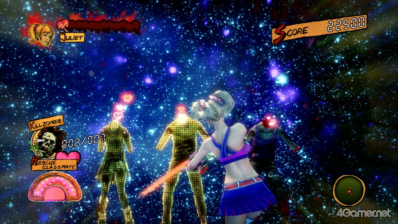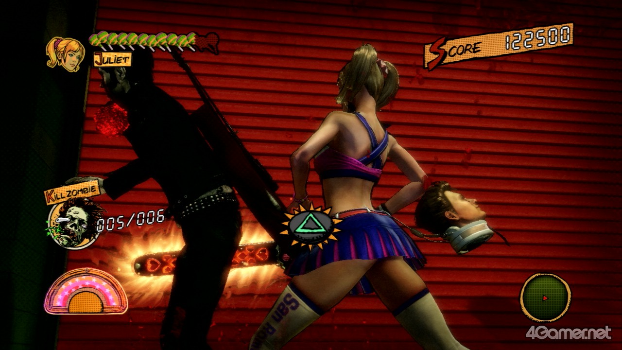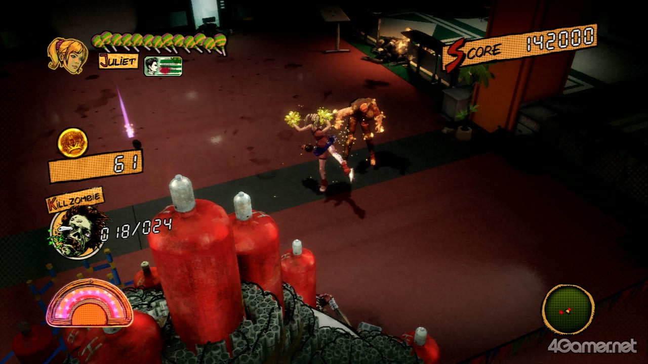 另外,要打倒殭屍的話還是以電鋸為主,儘管啦啦隊攻擊可以讓殭屍暫時失神(?),不過要用啦啦隊攻擊來打倒殭屍的話會很辛苦。話雖如此,啦啦隊攻擊也不是沒有用的,例如可以用啦啦隊攻擊來讓複數的殭屍失神的,再用電鋸來一口氣殺掉他們也是一種活用法。