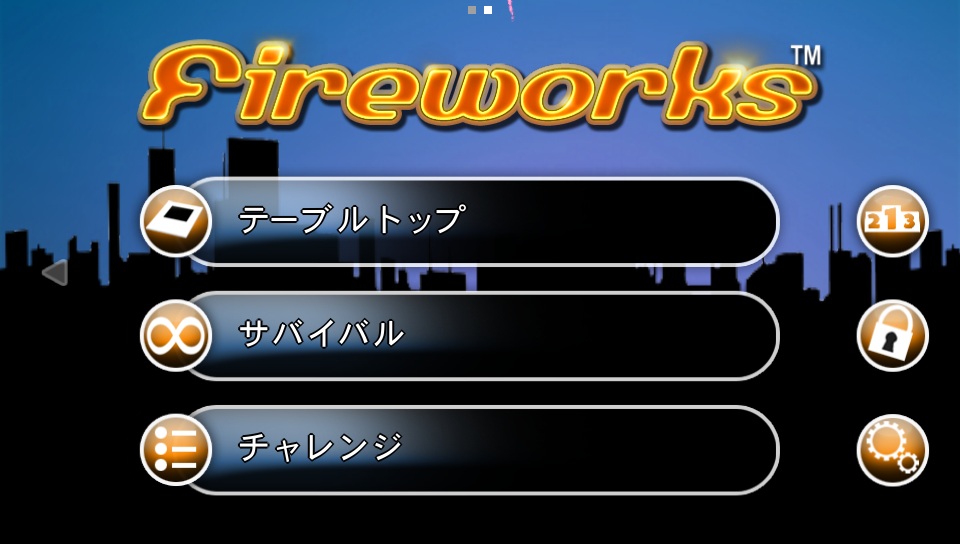 煙火》是款以發射煙火的璀璨七彩霓虹來裝飾攝影鏡頭取得的風景的獨特動作遊戲。採用當發射出去的煙火達到最高點時觸碰螢幕,讓煙火盛開就可以得到高分的玩法。支援線上排行榜。