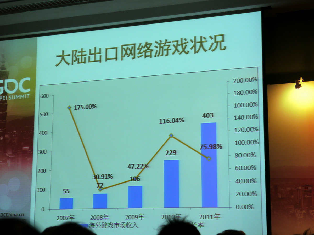 經濟部工業局電子資訊組組長蕭振榮表示,台灣遊戲產業從 2006 年至 2011 年每年以 15 至 16% 成長,台灣自主研發的作品銷售額有 20% 去來自海外,而兩岸如今已經簽訂 ECFA,而回顧台灣出口到大陸的線上遊戲為 27 款,他希望大陸可以開放更多台灣遊戲、以便進行交流,看如何藉由兩岸合作把中華文化的遊戲向世界推廣,創造兩岸雙贏的局面。