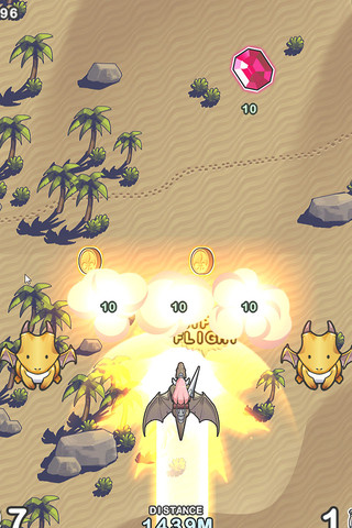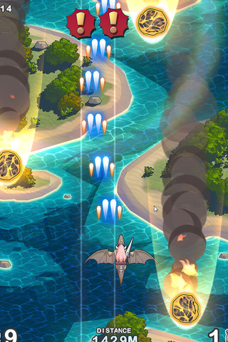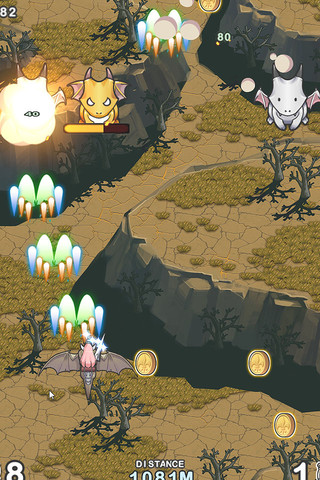 一路上也會有加速衝刺的特殊道具,以及除了敵人之外的流星殞石等妨害來增加遊戲的挑戰性。敵軍龍群則依照白、黃、粉紅的順序漸次提升血量,臨時之間避無可避時務必先從較弱的敵人進行攻略。