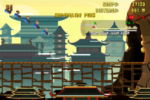 操作採虛擬按鍵觸控,左下角為前進與後退鈕,右下角則是跳越鍵,面對敵人攻擊時則是一樣用無敵的