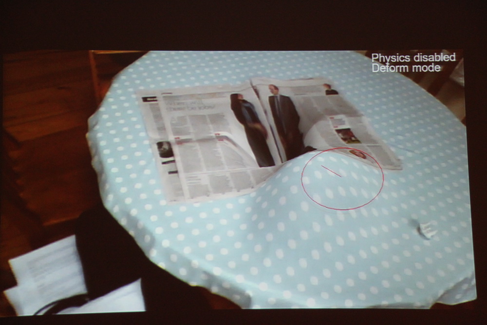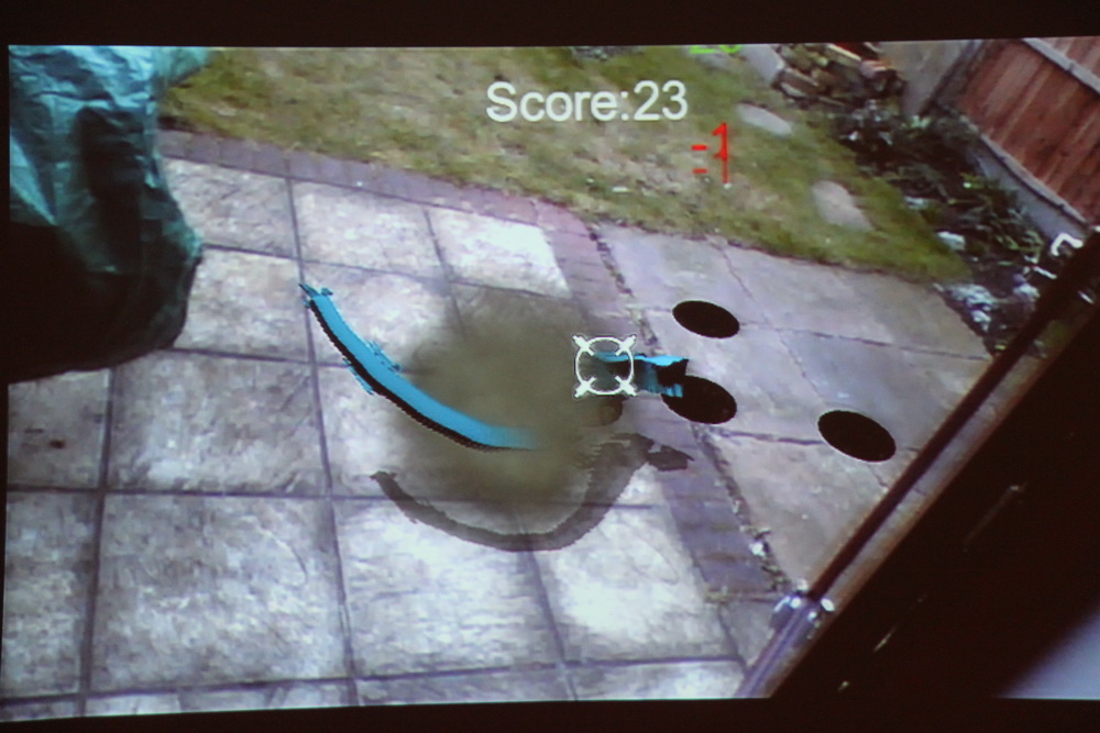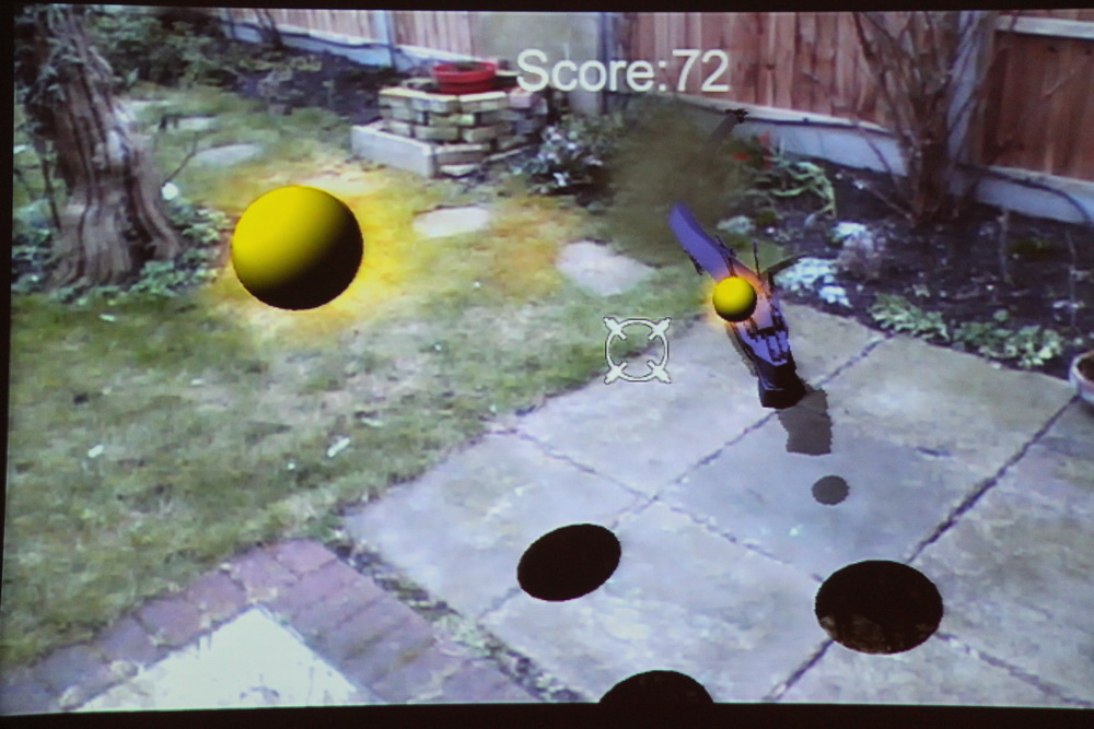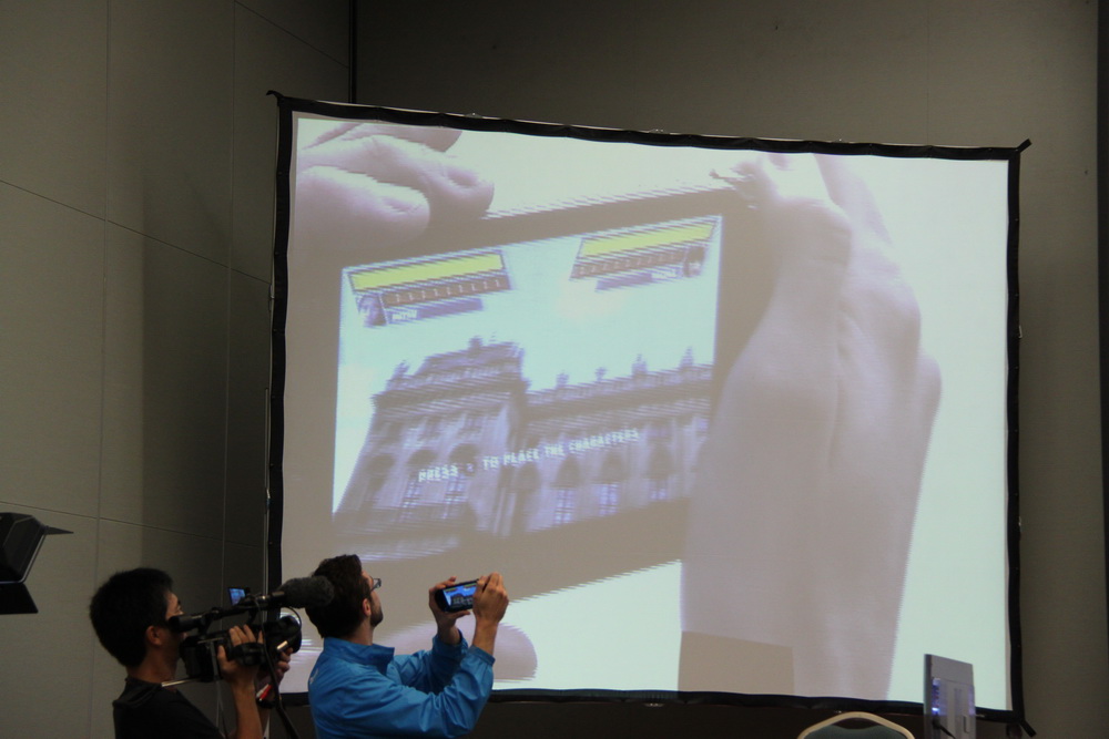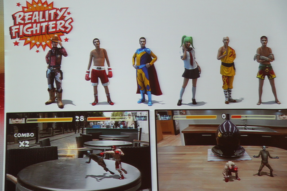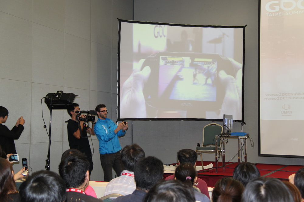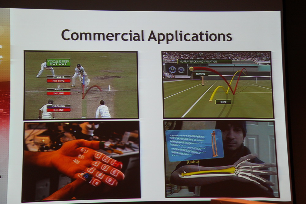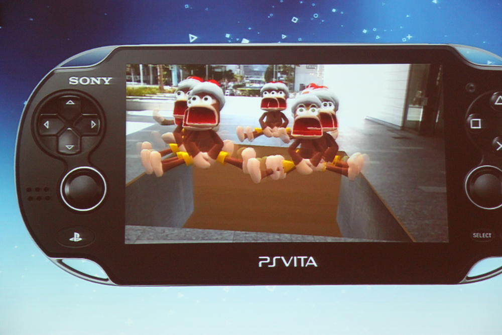 平川光雄接著提到了目前 SONY 在各種遊戲平台上,如何運用 AR 技術來帶給玩家嶄新的體驗。首先展示了過去的成果,於 2000 年推出的視訊攝影機「PlayStation Eye」。並且實際展示了運用 PlayStation Eye 的遊戲《EyePet》,現場也透過 PS Eye 結合現實環境與虛擬角色,展示玩家輕鬆無負擔的飼養虛擬寵物玩法。
