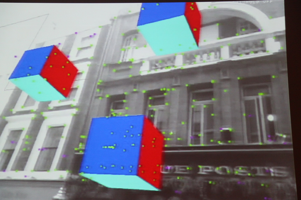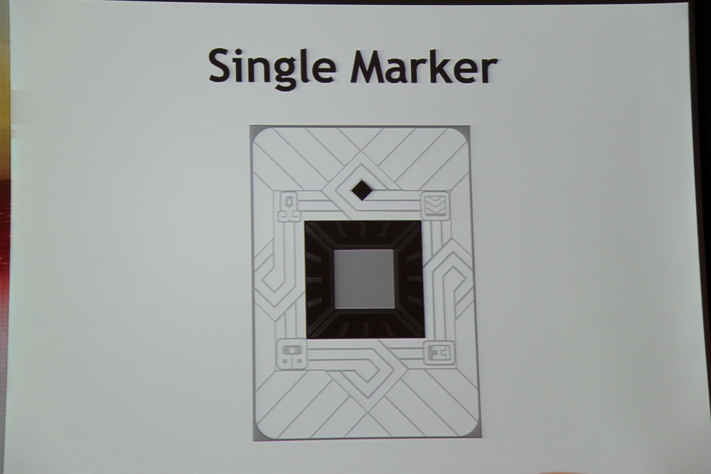 接著,展示了必須運用「Single Marker」的 AR 玩法,Single Marker 是一張提供定位辨識以作出虛擬物件效果的卡片,《inviZimais》同樣播放了一段影片,並現場試玩展示。