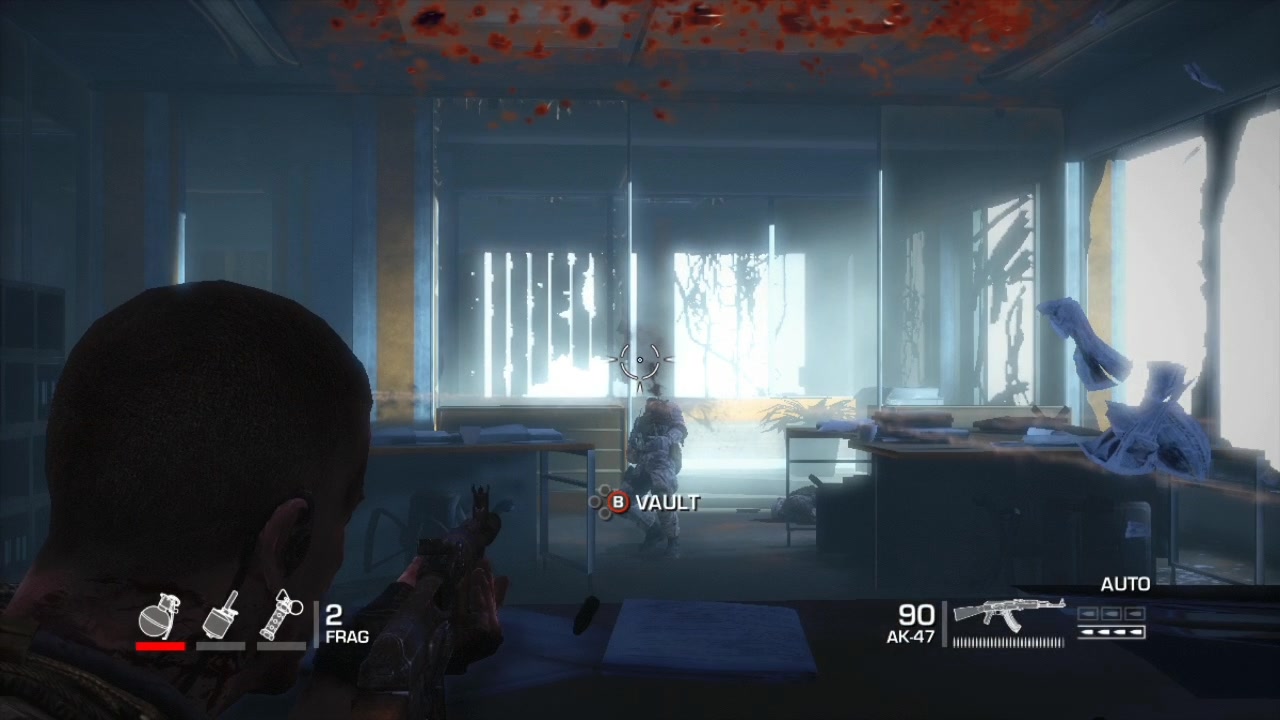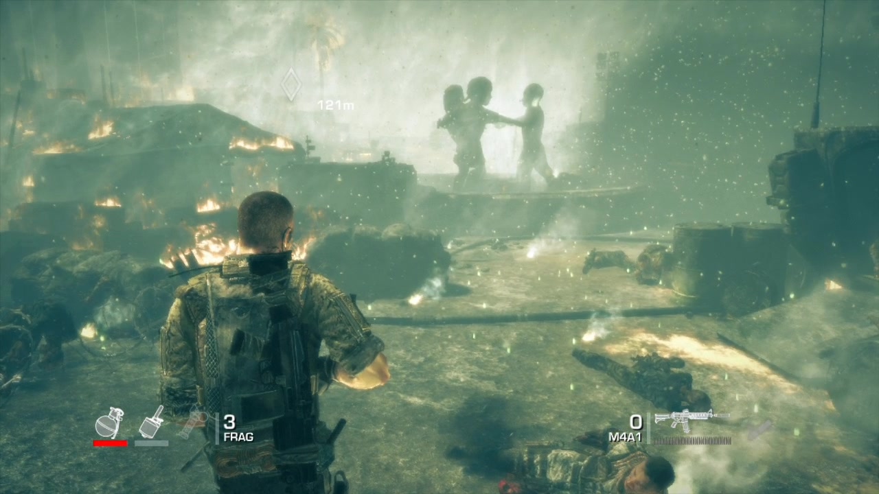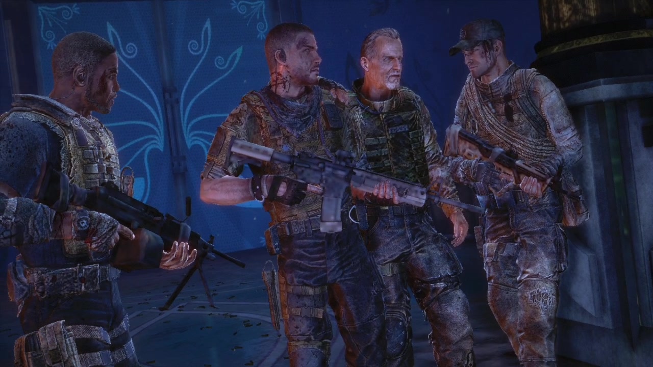 沒子彈時,除了肉搏攻擊可以讓玩家得到少許的彈藥之外,「小隊指揮系統」也可以稍稍減輕玩家彈藥的負擔,作為隊長,你可以指揮小隊中的其他兩名成員---機槍兵Adams與狙擊手Lugo來支援你,Adams可以提供你強力的壓制火力和投擲震撼彈,而Lugo則可以替你擺平遠距離的目標,在遊戲中一些需要無聲潛入的部份,玩家也可以換上消音器,下令隊友和你一同進行同步狙殺。不過在下指令時,玩家也要小心,因為衝出去的隊友要是少了你的掩護,也是很容易陣亡的!