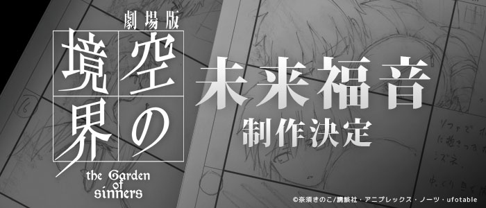 空之境界 未來福音》原本僅推出同人誌版,後在 2011 年正式發行文庫化書本。內容為描寫主角「黑桐幹也」和擁有未來視(預見未來)能力的少女「瀨尾靜音」相遇,兩儀式與同樣擁有此能力的連續炸彈魔「倉密目留科(倉密メルカ)」的對決......等外傳故事與後續。