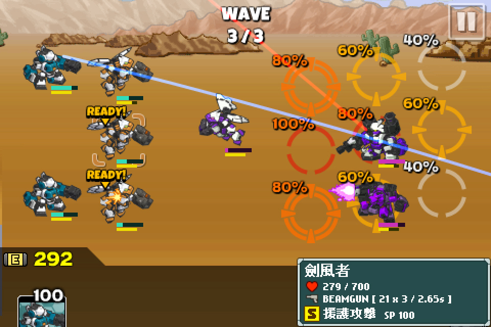 選擇好卡片進行配置的時候、需要消耗一定的能量,越是強大的機體相對消耗越多的能量,可不能沒有經過考慮就一直派上場。除此之外,將同樣 2 張卡片重疊進行合成的話,還可以將現有的機體強化。