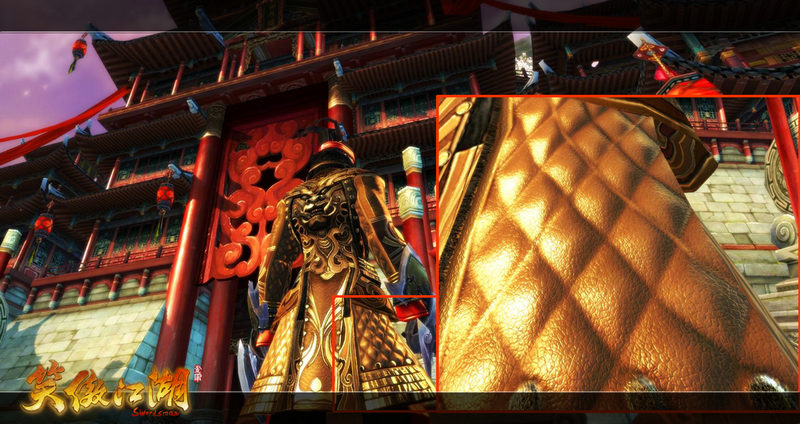 完美世界指出,遊戲在角色設計方面遵循有曲線更完美的原則,女性身材凹凸有致,男性肌肉線條強壯有力,充分展現出江湖中習武之人的健美體態。人物皮膚質感近距離觀察之下,甚至連汗毛孔都清晰可見。遊戲中的角色服飾材質紋理同樣細緻,皮革的紋理和金屬的光澤可直觀分辨。在精細化紋理貼圖技術的支持下,《