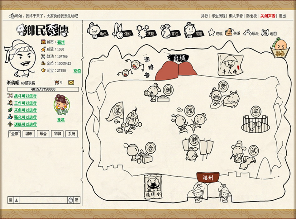 由於遊戲主角是一名從小生長在村落的小混混,因此在江湖中學習了各派技能和武藝。官方表示,遊戲中的許多技能包括「吐口水」和「甜在心饅頭」等,結合線條簡單的人物風格和遊戲畫面後,希望讓玩家在闖關殺敵的同時也能會心一笑。