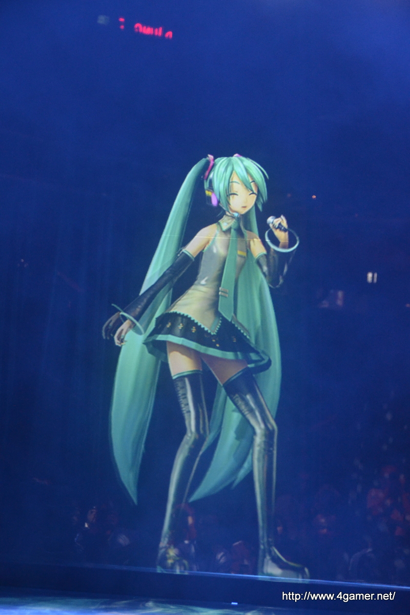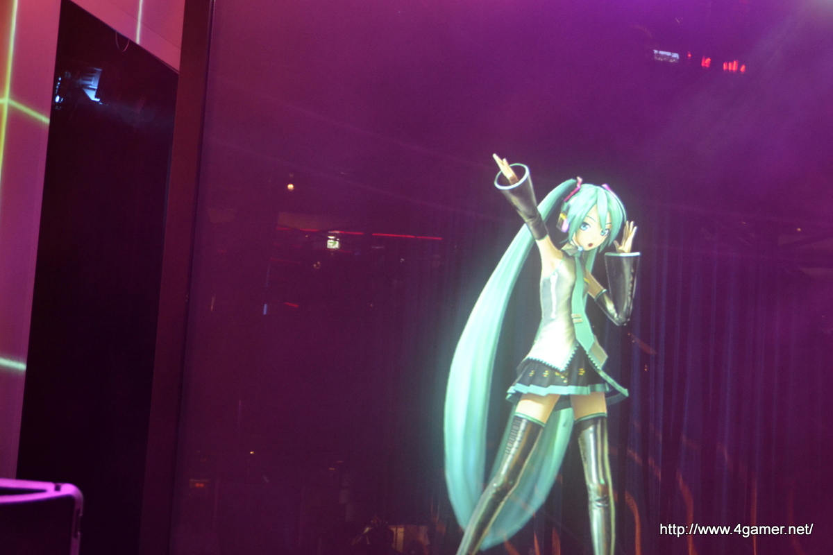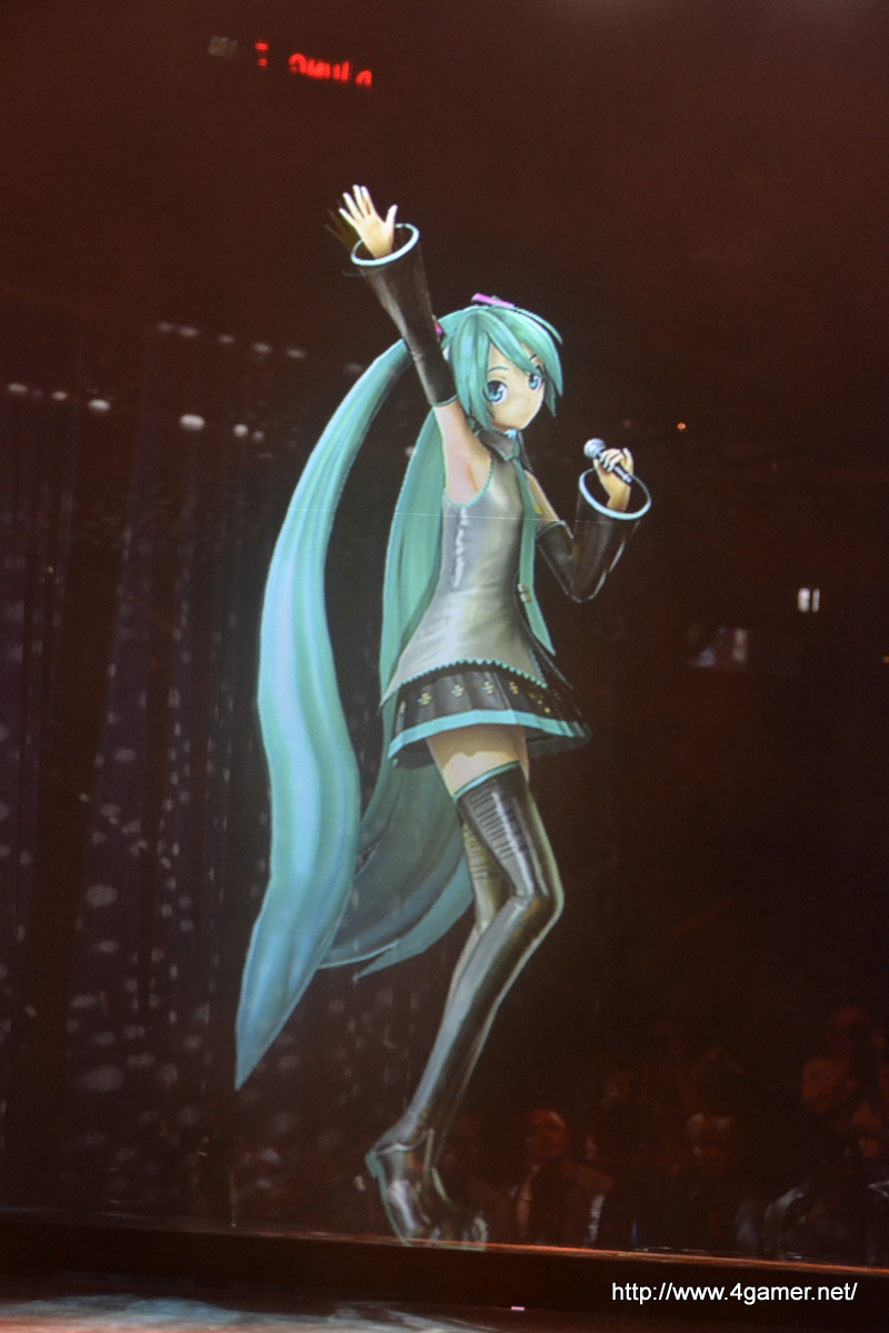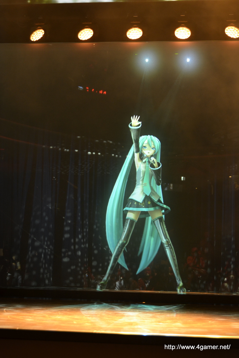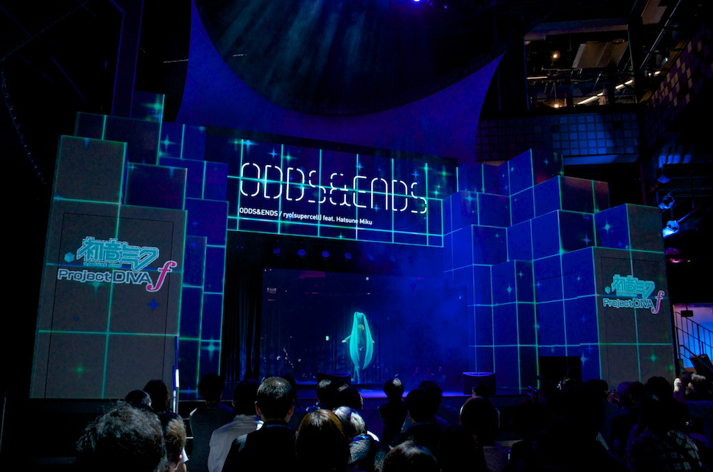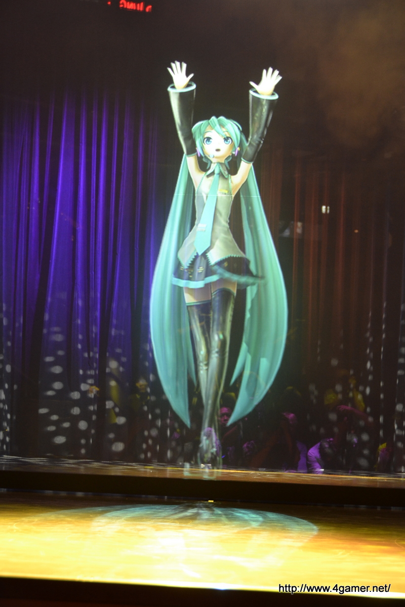而舞台的重點初音未來,則是登場在「初音未來感謝祭演唱會(ミクの日感謝祭)」等活動中令人熟悉的 3D 投影透明螢幕裡。記著者表會上雖然是讓大家坐著觀賞,但是實驗的演唱會是站著觀賞的形式。而且因為舞台和台下的距離非常的近,所以更可以近距離的享受充滿臨場感的初音未來表演。