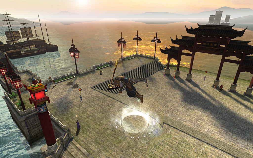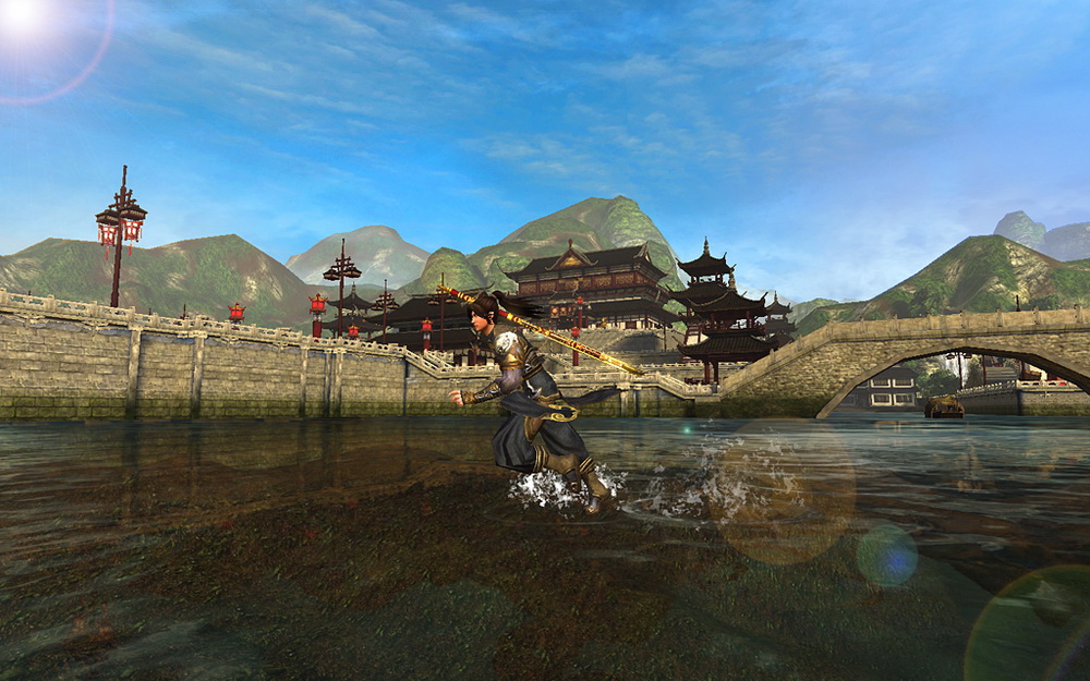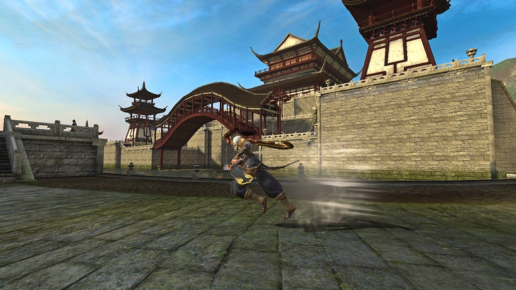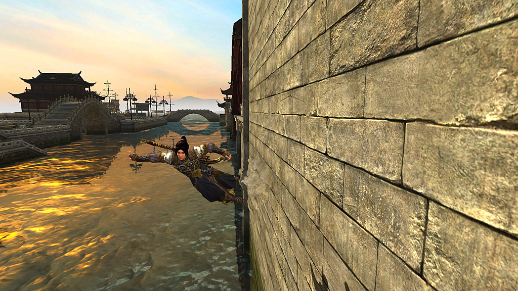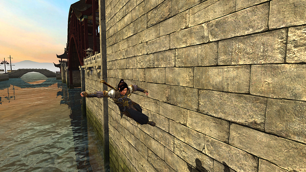 流星蝴蝶劍 Online》的輕功真正是具備操作真實感以及遊戲融合感!因為很多武俠遊戲在執行跳躍或移動的輕功時,玩家會覺得角色踏在地上或水上的感覺很飄、很沒有著地感,與其說是輕功,感覺就像是浮起來的離地而行。但在《