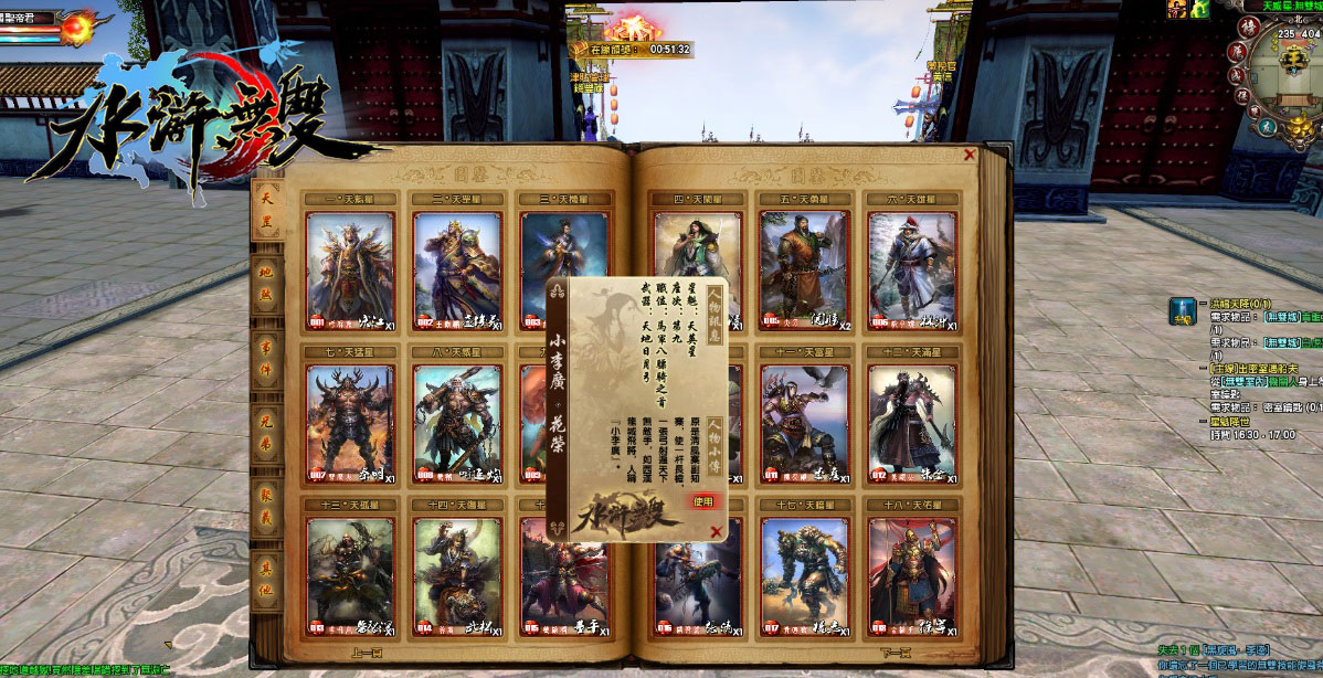 收集卡片除了可以增加角色的屬性,還有更多隱藏功能等你來探索;每一張卡片都對應著一位梁山好漢,這些英雄卡片不僅能夠讓玩家透過文字介紹了解每個梁山好漢的前世今生,還能在變身副本或是國戰中實現自由變身英雄好漢的樂趣!打國戰,下副本,搖身一變屬性成倍增幅!此外,遊戲中也設定以華麗的書冊供玩家們展示卡片蒐集成果,玩家每新增一張,書冊都會有不同的變化,當收集滿 108 張英雄卡片後,將有全新的驚喜等著你喔!