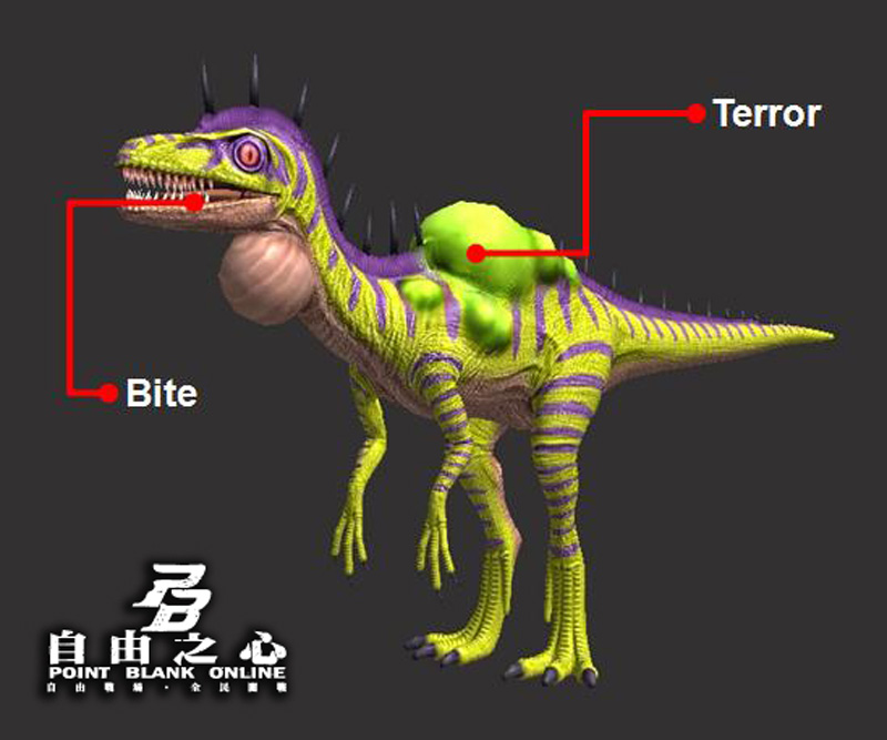 迅猛龍:通緝代號為「殺手刺客」,有著奸詐狡猾的嘴臉,動作靈巧迅敏,若你稍微失神,他便有可能會以急速,意想不到地衝到身邊啃食你。