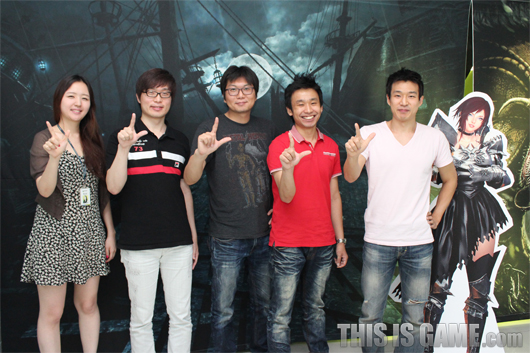 左起《瑪奇英雄傳》Live Team企劃人黃善華、技術長紀賢宇、美術組長朴誠燮、Live Team組長鄭承宇、監製韓才浩