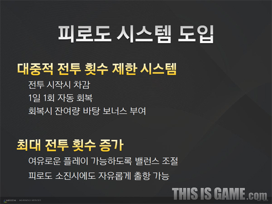 瑪奇英雄傳》Live Team組長鄭承宇表示:「變更戰幣系統,讓新手能夠更容易上手,也滿足輕度與重度玩家。改成疲勞度系統之後,一天可下副本的次數是原本戰幣系統的兩倍。」