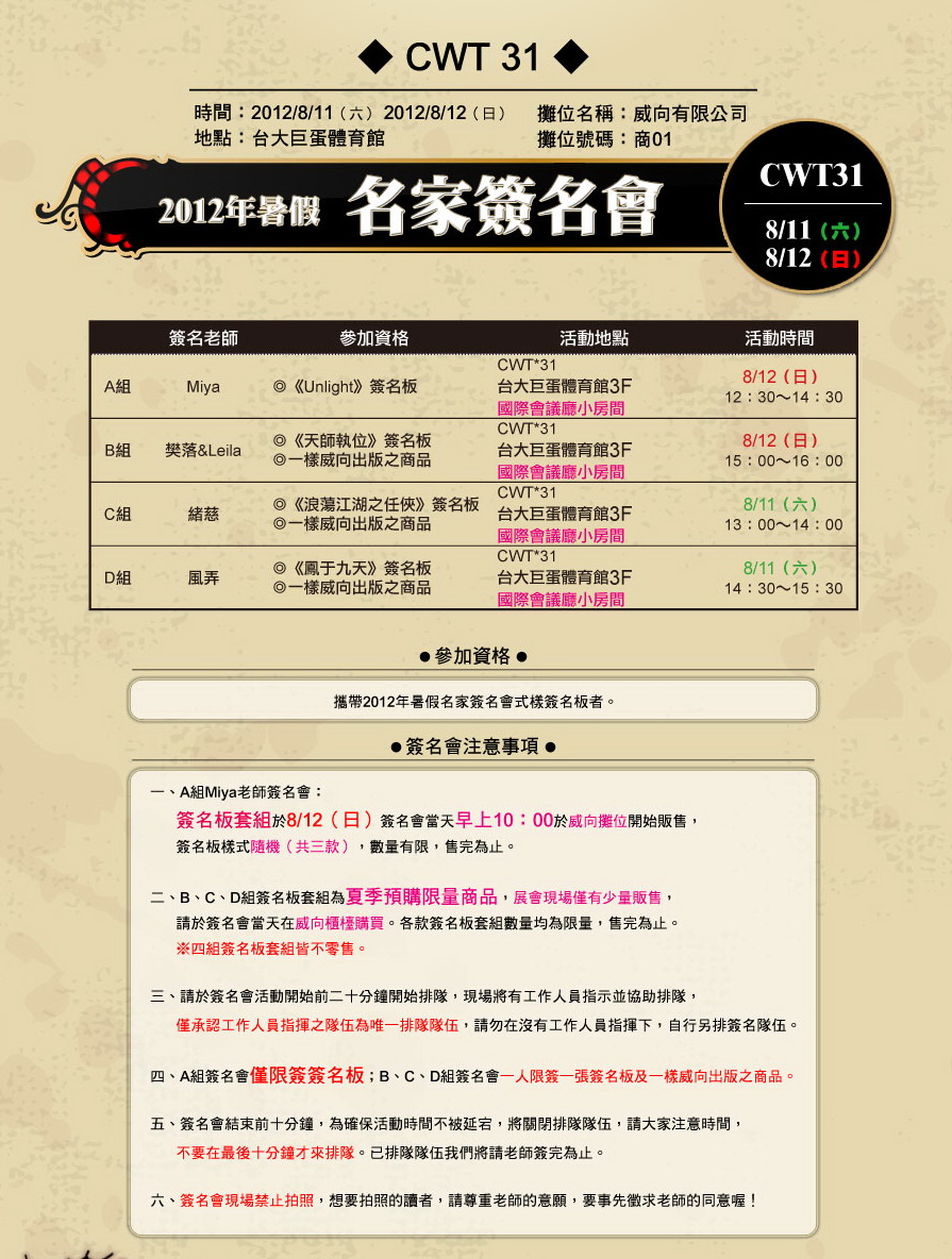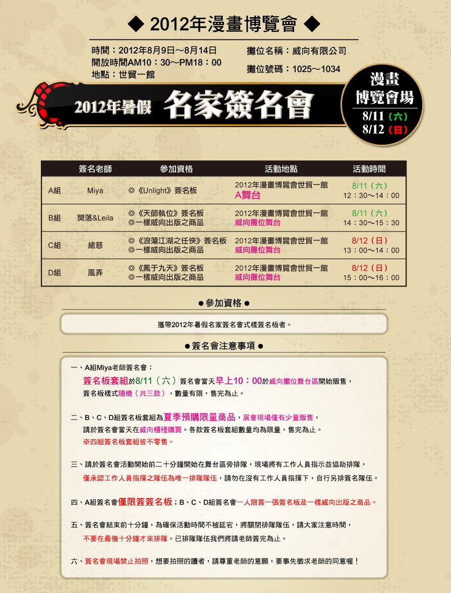 除此之外,還有更多威向的作者來台舉辦簽名會,一起來威向攤位走走,品嘗夏日午茶滋味吧!