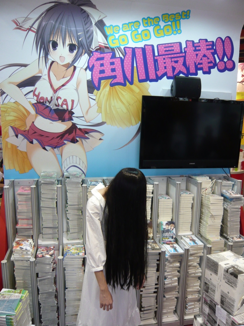 「夏天就是要衝漫博!」一年一度的夏日盛典就在一片你推我擠中正式開始了,台灣角川首賣第一天就請到貞子站在門口,迎接大家的到來。頂著36度的炎熱高溫,貞子助陣讓排隊在外的漫迷們吶喊了出來!排隊20多天,漫迷們為的不是別的,就是台灣角川限量480個《