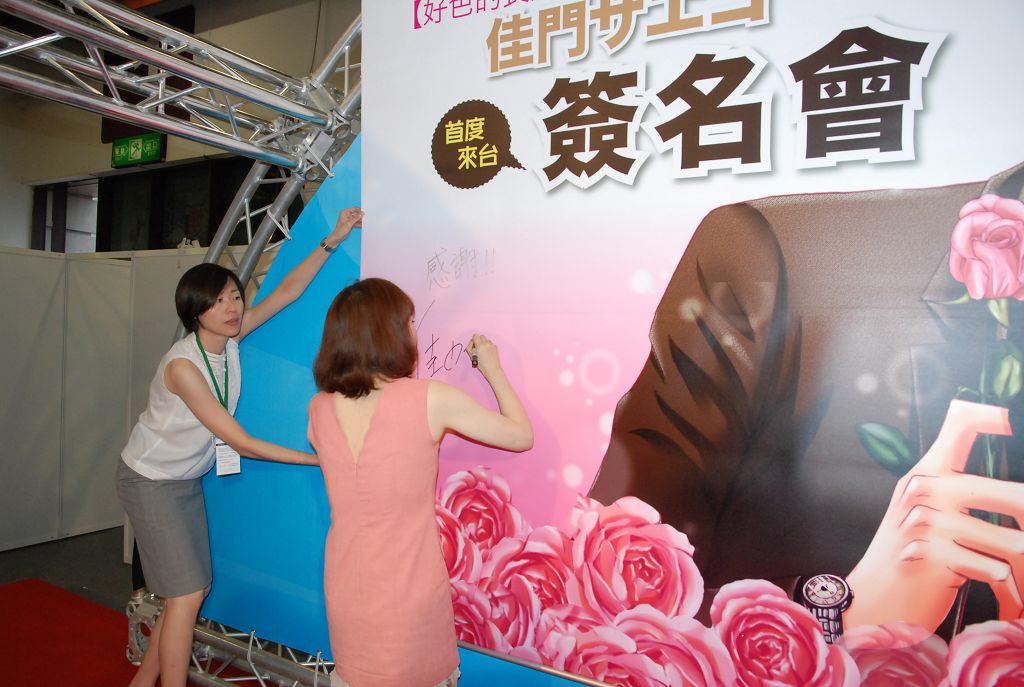 對於今天在台灣的簽名會,佳門サエコ表示她相當驚喜,完全沒想到台灣的讀者如此的熱情,和日本的讀者完全不同。原本就一直想要來親自向讀者道謝的她,這次來了之後確實的感受到台灣人的友善,也說下次一定還會再來。而一旁的翻譯小姐透露,在簽名會上佳門サエコ的媽媽也一度感動到落淚,看得出來她的雙親相當地以自己的女兒為傲。而不知道原來有這件事的佳門サエコ則說:「看來媽媽看到了有這麼多讀者支持我的 BL 作品,未來應該就不會再叫我要嘗試畫男女配對的故事了(笑)。」
