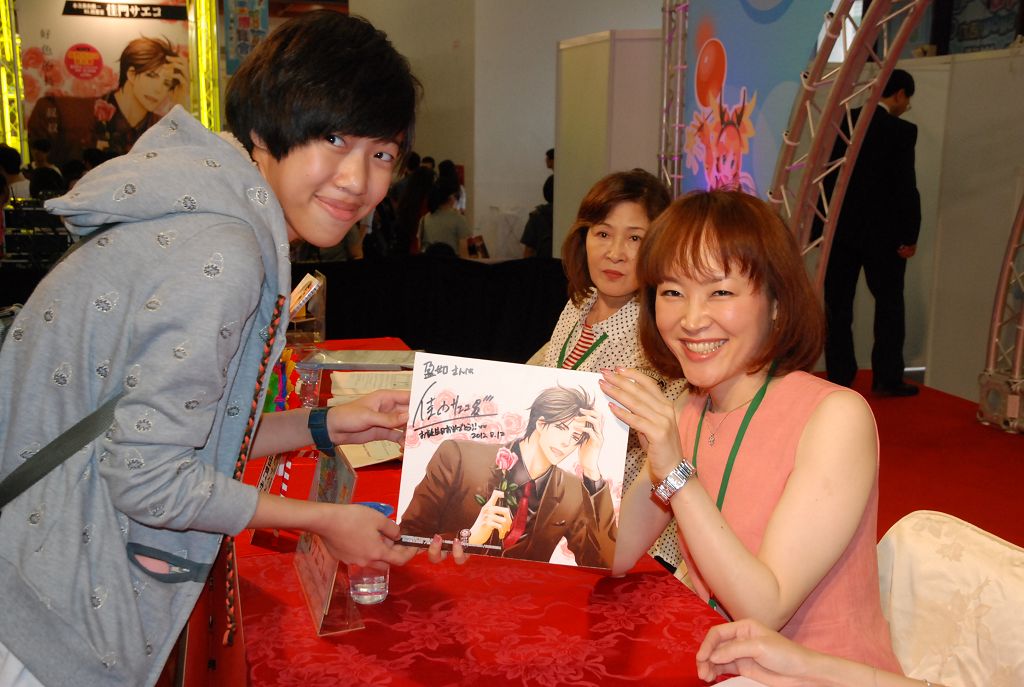 她也提到,在現在的日本有越來越多的人逐漸認識、瞭解 BL,這是一件相當令人開心的事。最後則表示這次來到台灣能夠看到台灣的讀者們,只想說謝謝大家一直以來的支持,今後她也將持續以 BL、帥哥、LOVE 為人生信念努力創作,也歡迎大家到她的網站和 Twitter 上一起交流:「當然,最重要的就是讓我們(指自己和台灣的讀者們)一起努力推廣 BL 吧(笑)!」