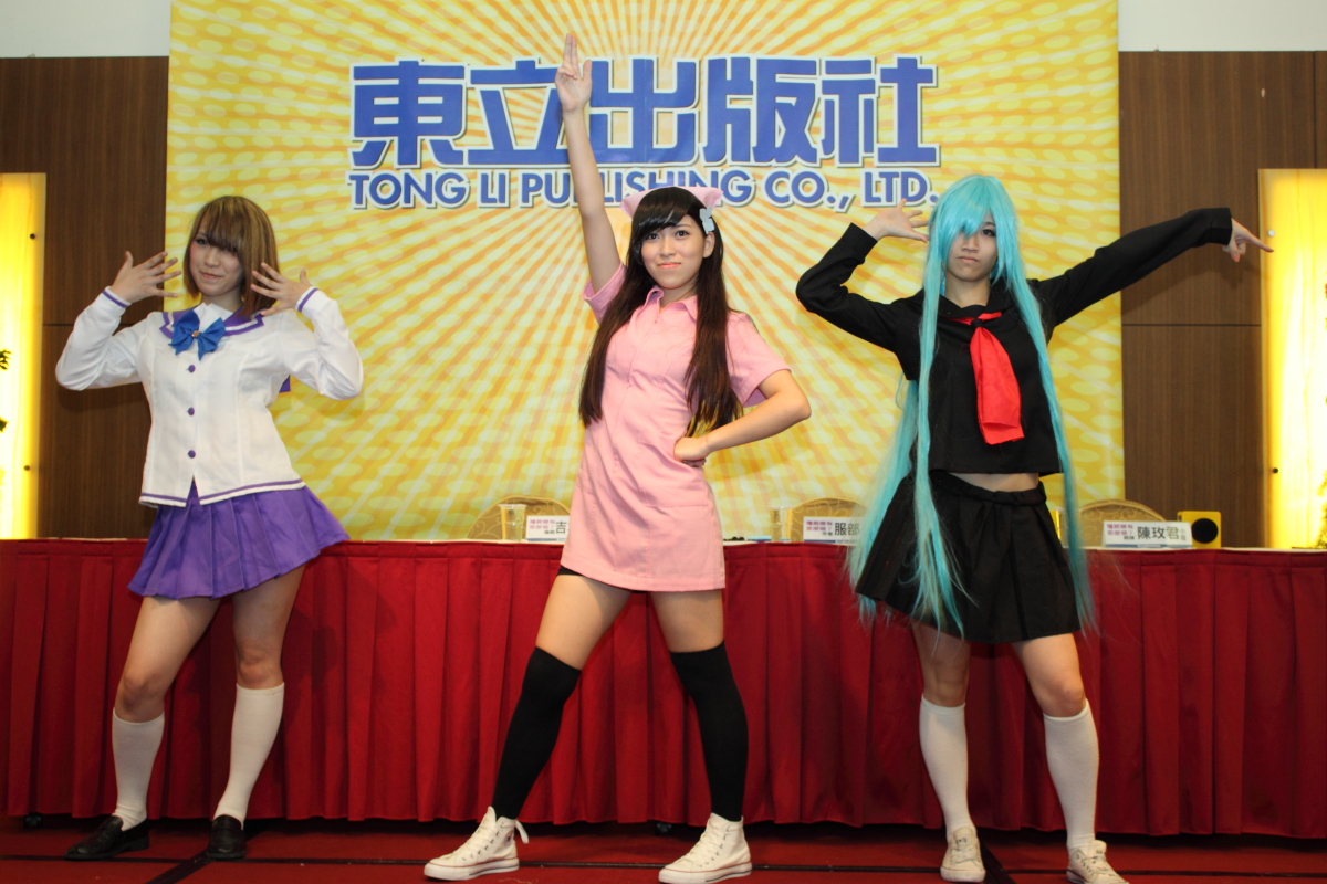 下午於台北國際會議中心舉行的服部充記者暨讀者見面會,開場首先請到了扮演成原作三個女主角散華禮彌、左王子蘭子和降谷萌路的 COSPLAYER 登場,並表演充滿動感的舞蹈,來替記者會暖場揭開序幕。