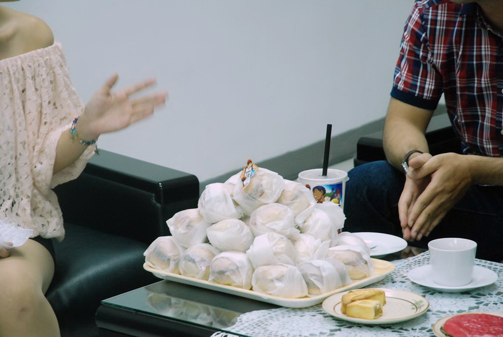 兩人品嚐著主辦單位準備的台灣式奇蹟世代甜點