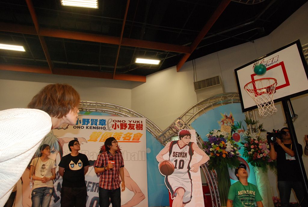 在簽名會上,除了首先邀請到花式籃球團體 TSD 進行暖場表演,之後小野賢章與小野友樹兩人登台,更各自抽出了現場參加簽名會活動的三位粉絲和自己組隊,進行投籃大賽。結果兩隊一度戰成 1:1 的平手,最後是兩位聲優進行延長加賽,才確定由小野友樹隊獲勝。而獲勝隊伍的幸運粉絲,也獲得了兩位聲優的簽名海報,讓台下其他人羨慕不已。