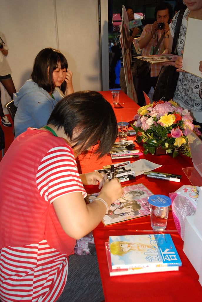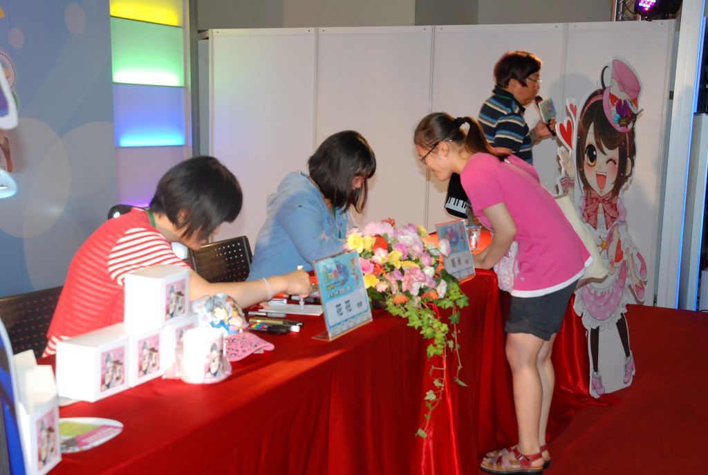 在簽名會開始之前,花花和蝦米都表示雖然之前有舉辦過簽名會,不過因為那時候是六個作家的聯合簽名會,而這次只有兩個人,所以兩人都非常緊張。