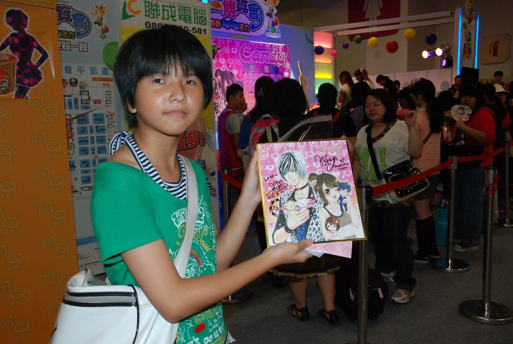 至於目前正在連載校園四格漫畫的蝦米說,自己很喜歡《櫻桃小丸子》、《抓狂一族》之類的作品,所以希望自己的作品也能給少女們帶來歡笑。而從從兩年多前在長鴻的漫畫雜誌中擔任心理測驗小單元的插畫師開始就有讀者在支持她,一路陪著她到現在,也讓她相當感動。