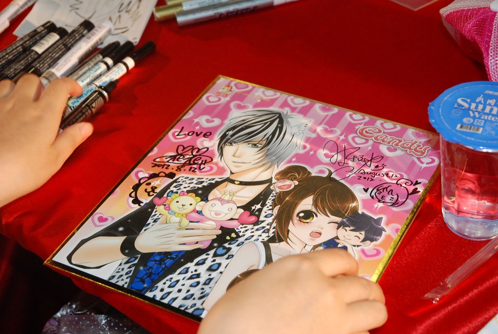 回想到之前的簽名會活動,花花和蝦米都表示看到有讀者準備了好多人一起簽名的應援看板時,幾乎感動的都要落淚。「真的,那時後只差點沒有撲上去給這些可愛的讀者熊抱了!!」蝦米開心的說。