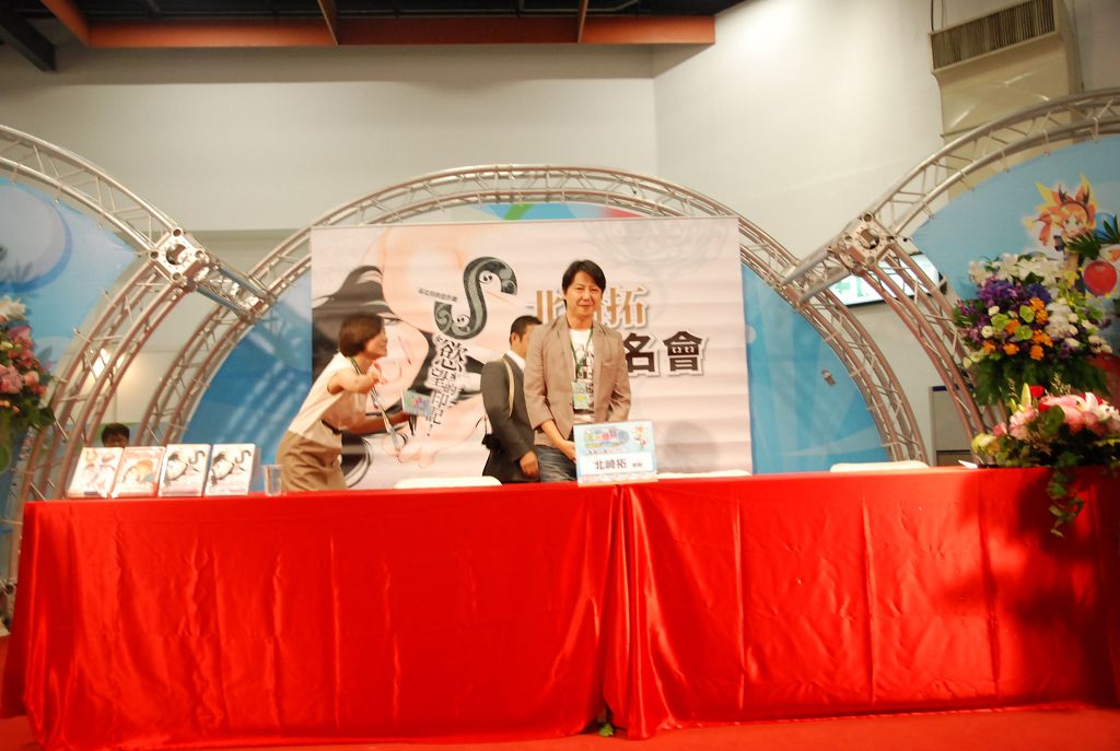 近年有《虹玉》、《櫻桃症候群》、《我×老婆大人》等「邱比特的惡作劇」系列作品陸續發表的漫畫家 北崎拓,這次受台灣東販之邀,於今(13)日來到台灣漫畫博覽會中為《S,慾望的印記!》第 8 集首賣舉辦簽名會活動,並也在簽名會結束後接受專訪。