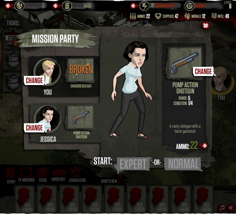 關卡的進行採取社群遊戲較少見的回合制,並將「匿蹤」的要素也加入了關卡中。雖然是回合制,不過在進入殭屍的警戒範圍前玩家都不需等待殭屍的回合,可以自由行動。若是玩家的行動引起殭屍的注意,殭屍便會開始窮追不捨,而玩家可以選擇迎擊,當然也可以迅速逃脫。