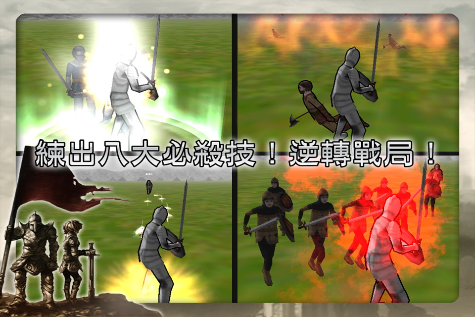 玩家可以發施號令,帶領部下們攻城略地,參與攻城戰和防衛戰!除了指揮外,玩家也可以親身上陣,騎著駿馬縱橫馳騁,手執長矛,與敵軍展開連場廝殺。必要時還可以使用必殺技,包括燒死身邊敵軍的【火焰之牆】、立即恢復自己 所有體力的【痊癒之風】等等。