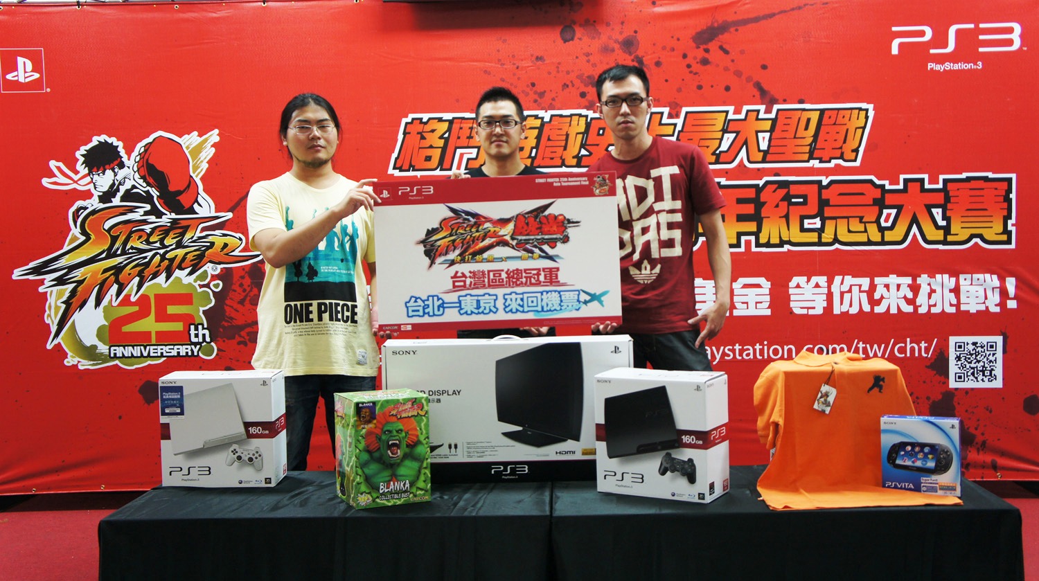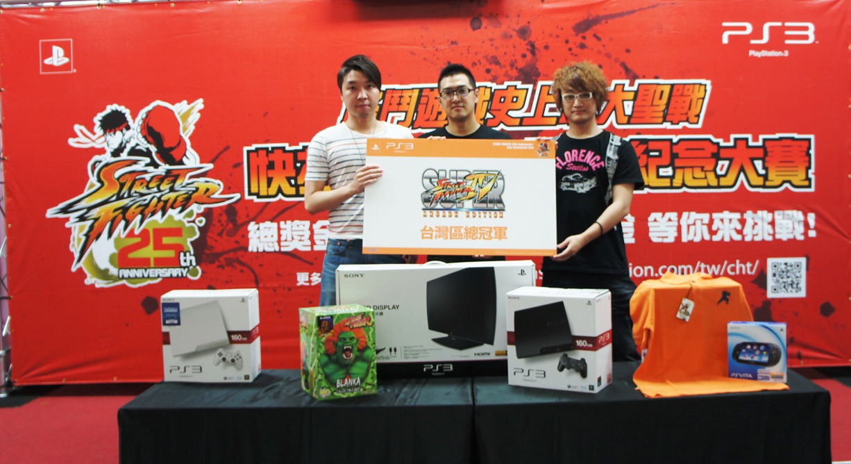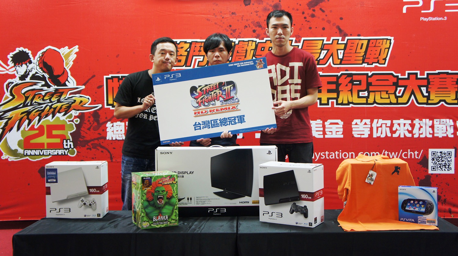 《超級快打旋風 2 Turbo HD Remix》冠軍 Jimmy(中)、亞軍梅原(右)、季軍 ET(左)