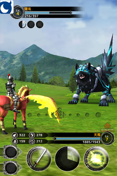 一開始玩家可以在座狼、巨牛、野馬三個選擇中擇一成為自己的座騎,操作方式則有點脫胎於常見的平面網頁社群遊戲,利用「探索」、「召喚」、「開發」等簡單指令就能使主角奔走於大陸上或是在培育所強化合成新的裝備。