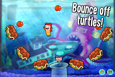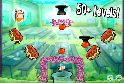 不過就像其他物理益智遊戲相同的,關卡中也會散落等同於星等評價評價的紅番茄,只有收集到全部的番茄該關卡才算是有個完美的句點,隨著關卡的進行,玩家也能使用其他動畫中出現的人物,並面對彈簧龜殼、珊瑚礁障璧等不同機關,歡樂活潑的動畫風格使人感覺十分輕鬆愉悅,目前總計有超過 50 個關卡讓玩家探索。