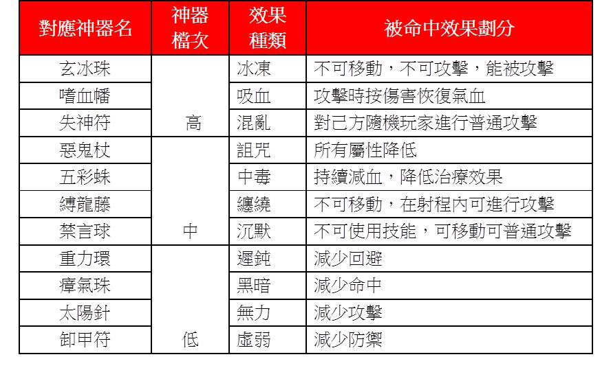 神器是一個裝備類道具,「裝備規則」及「升級規則」與裝備類道具相同。