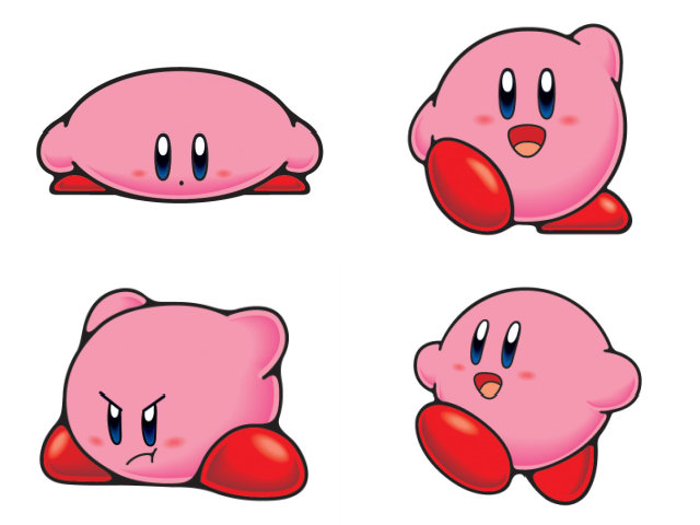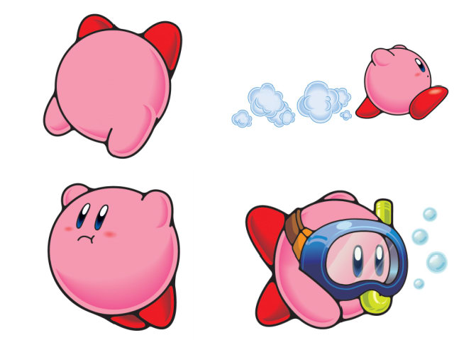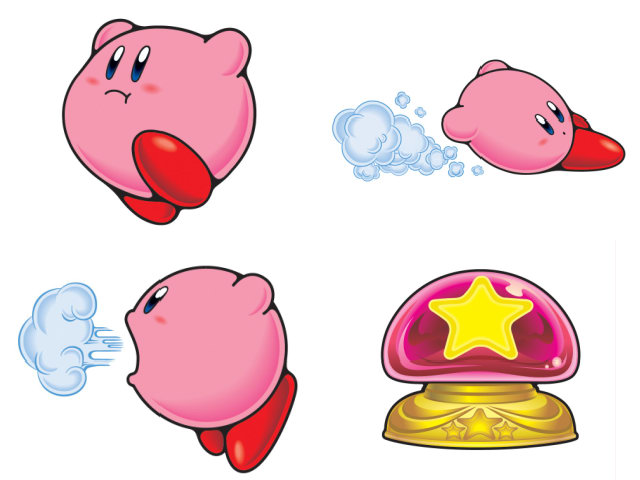 卡比外表為粉紅色,整體造型圓圓軟軟,在遊戲中也都是呈現出柔軟又有彈性的質感,光在遊戲中操作卡比跑來跑去,感覺就是非常可愛又治癒。