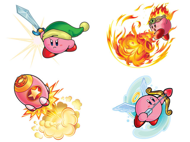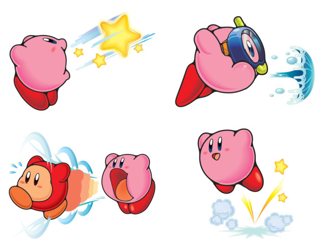 而提到卡比的特色除了 Q 軟可愛的質感之外,最具有代表性果然還是可以將敵人吸進嘴巴裡面之後,「拷貝 」敵人的能力這點。這個能力也是該系列吸引人很重要的因素之一,在遊玩過程中,會不禁期待究竟會有多少變身形態,而看到新種類的敵人就會忍不住張開卡比的大嘴將敵人吸進肚裡變身。