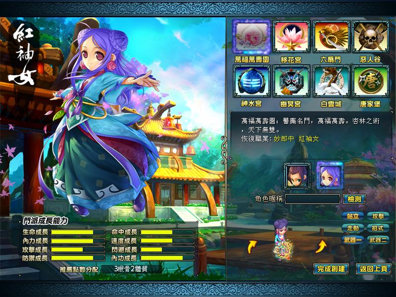 在遊戲中有八大門派武學博大精深,包括白雲城、神水宮、惡人谷、移花宮、唐家堡、幽冥宮、萬福萬壽園、六扇門…等八大門派,每個門派中又有 2~4 個不同的職業可以選擇,主要負責攻擊的門派,還會分外功跟心法,選擇非常多,比較特別的職業是神水宮、唐家堡與惡人谷中有主要負責控制系的職業,所謂的控制系,顧名思義就是可以控制人啦!不但可以控制自己的隊友,還可以控制敵人,限制只能使用普通攻擊等技能相當的有趣,雞排妹 Ili 自稱從小就相當懶惰,也很喜歡照顧人,所以他最愛輔助系的角色,選擇的主要是幫大家補血的紅袖女,讓我們一起將武學提升至頂至絕的境界,一同與好友們剷除奸惡吧!