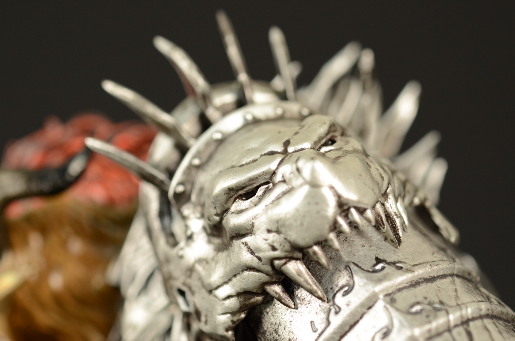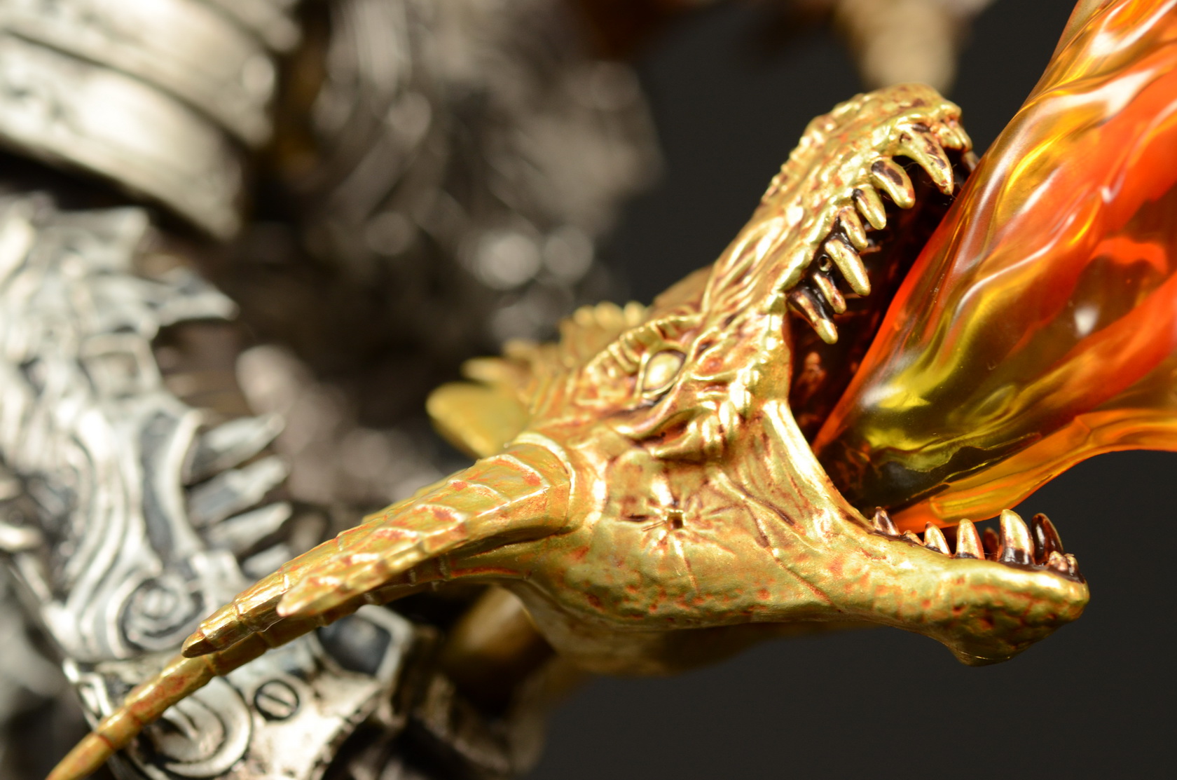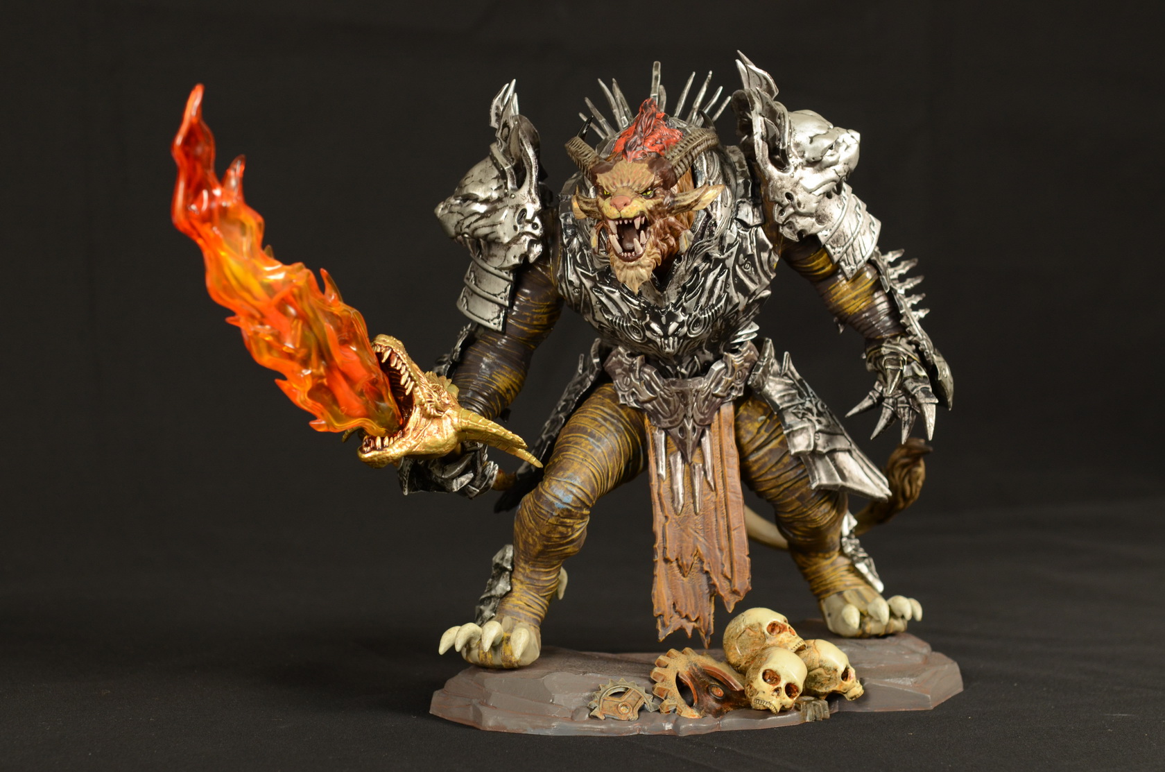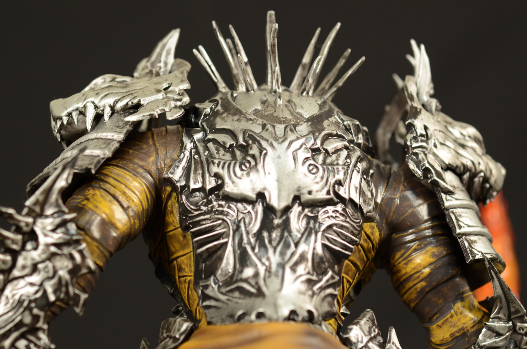 接下來就要進入本次開箱的重點:十吋夏爾英雄 Rytlock 的模型了。Rytlock 在遊戲中曾是傳說組織命運之緣(Destiny's Edge)的一員,也是夏爾一族的傳奇英雄,他暴風般的戰績,使得他在血之軍團中的排名急速爬升。手握火焰之劍的他,站在夏爾的黑色城堡前,帶領著軍隊勇往直前。