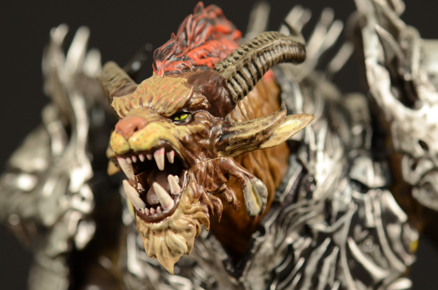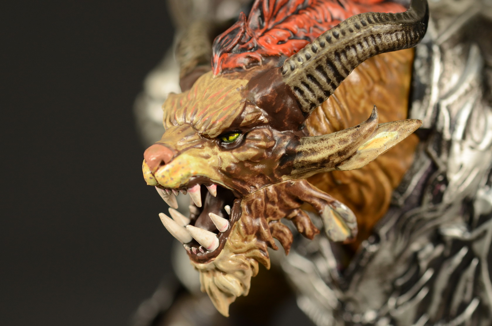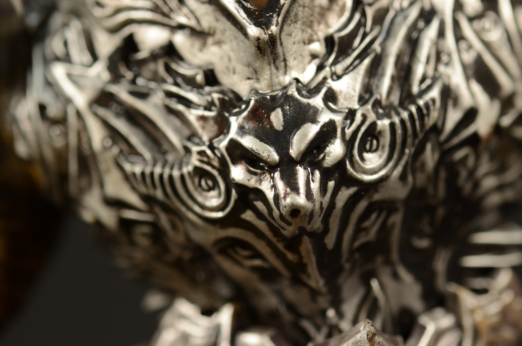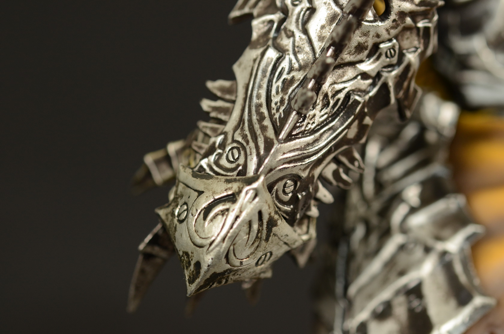 接下來就要進入本次開箱的重點:十吋夏爾英雄 Rytlock 的模型了。Rytlock 在遊戲中曾是傳說組織命運之緣(Destiny's Edge)的一員,也是夏爾一族的傳奇英雄,他暴風般的戰績,使得他在血之軍團中的排名急速爬升。手握火焰之劍的他,站在夏爾的黑色城堡前,帶領著軍隊勇往直前。