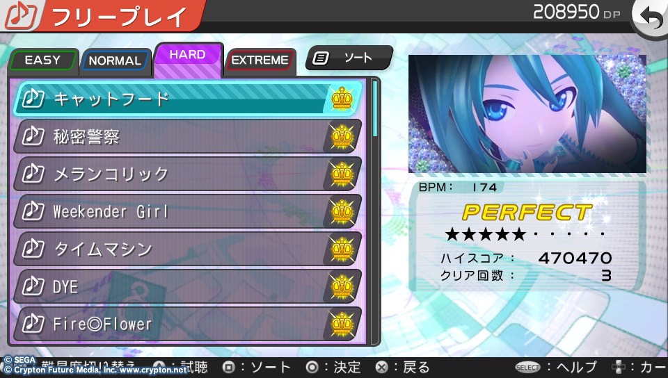 關於遊玩難度,筆者認為譜面又比 PSP 前作《初音未來 -名伶計畫- 擴充版(初音ミク - Project DIVA - エクステンド)》更具挑戰性,不過只要把握技巧區域、機會時間獲得高分就有很高的機率可以過關,整體來講通關門檻變低,但是全曲譜面難度變高。