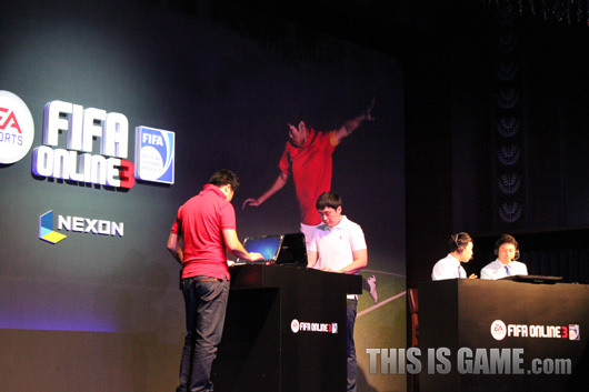 《FIFA Online 3》公開了真實面貌,首先請各位讀者看示範賽的影片,影片是 NEXON 與 EA 首爾工作室團隊各選擇曼徹斯特聯隊與昆士柏流浪者隊進行一對一的比賽,轉播與解說則由廣播員成承憲與 SBS 足球解說員朴文星負責。